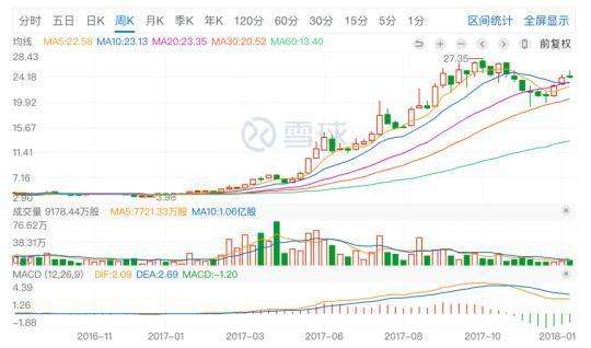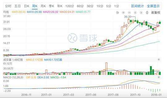 融創中國2017年股價走勢